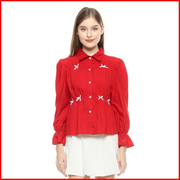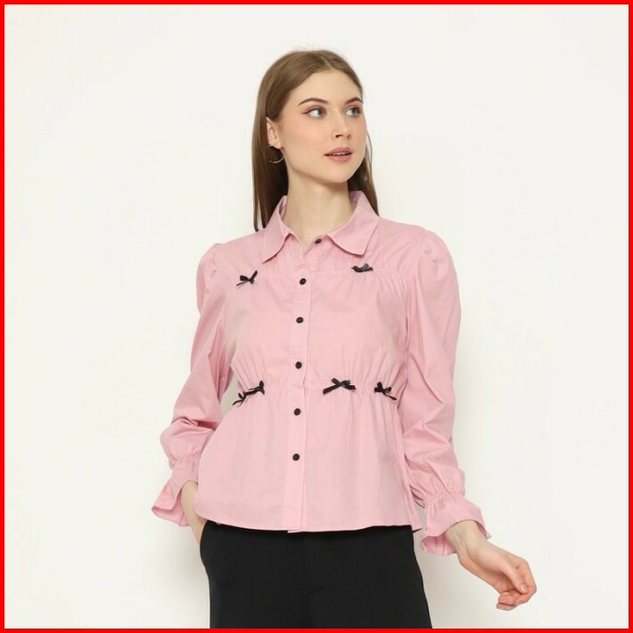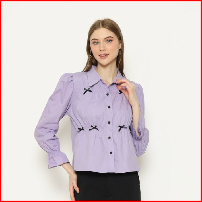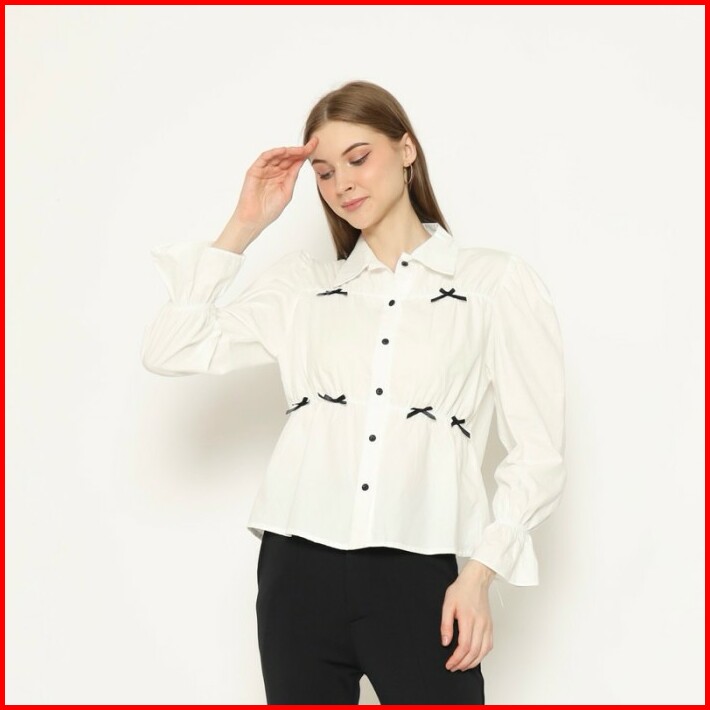 Yoko Cute Ribbon Shirt Kemeja Kerja Style Jepang Korea Atasan Wanita