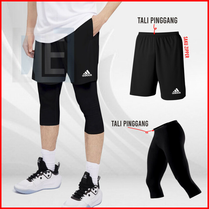 Paket Hemat Celana Olahraga Running Pria Wanita Celana Pendek Legging 2 In 1 Celana Futsal Sepak Bola Basket Legging 3 4