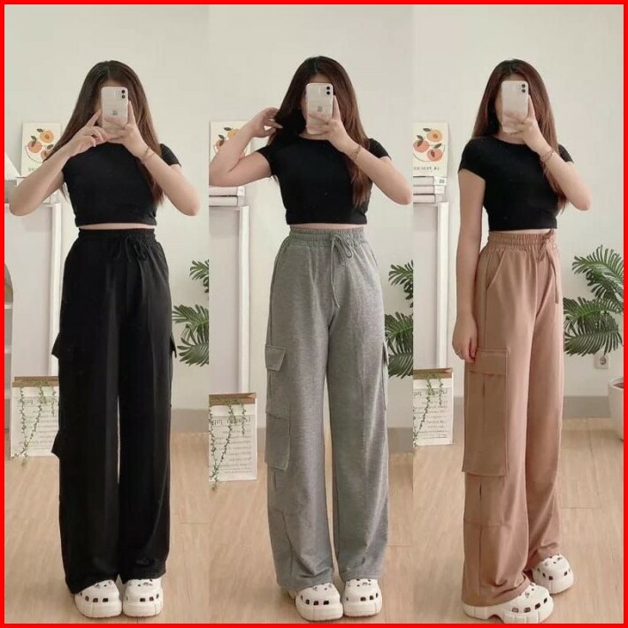 Celana Cargo Panjang Wanita Cargo Pants Wanita Jumbo Celana Training Kargo Panjang Wanita Baggy