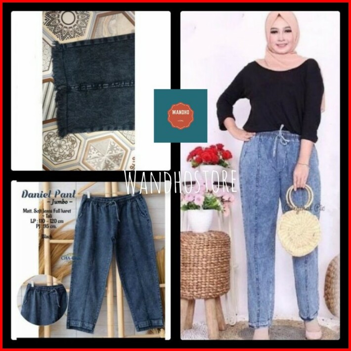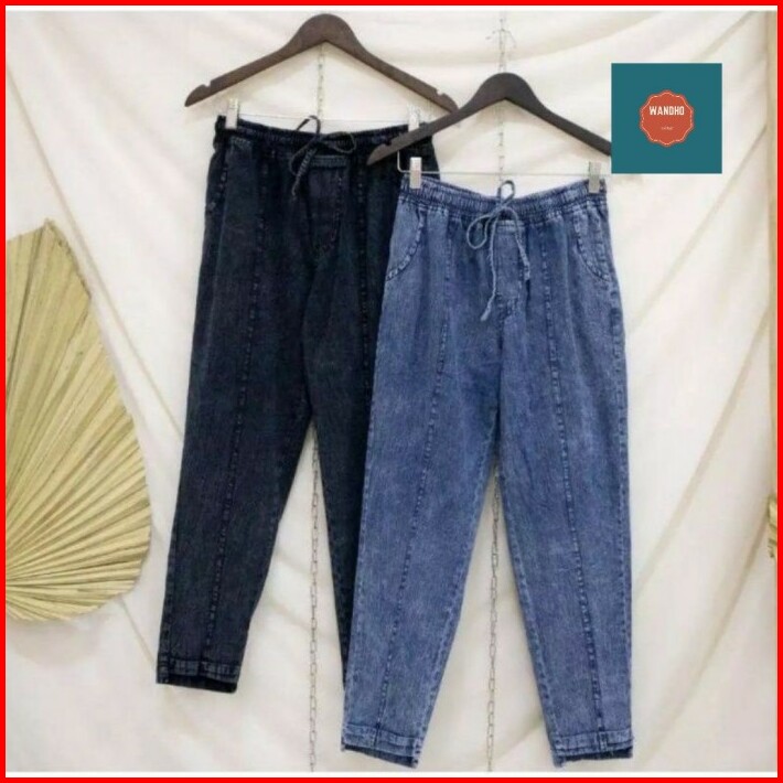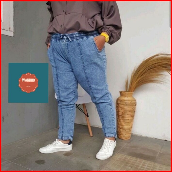 Celana Baggy Pants Jeans Wanita Warna Snow Standar-jumbo