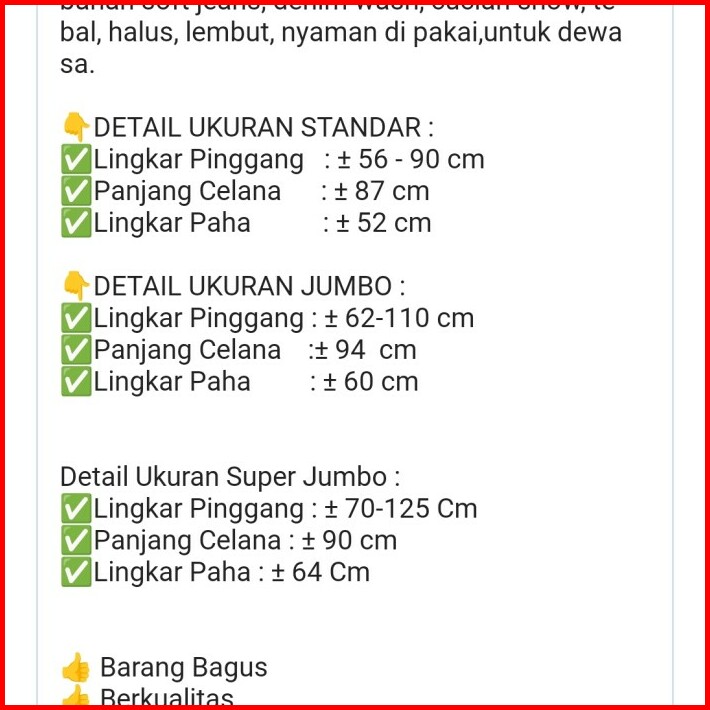 UKURAN CELANA WANITA