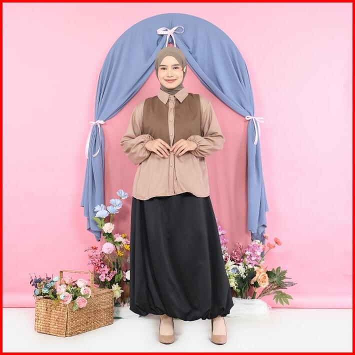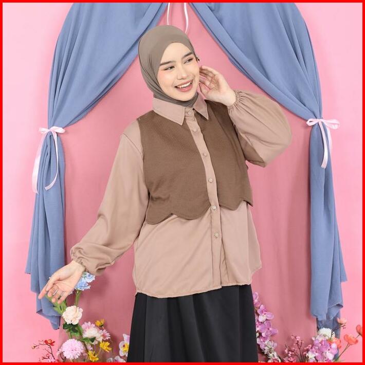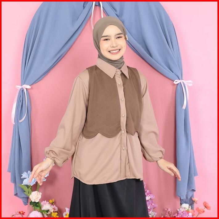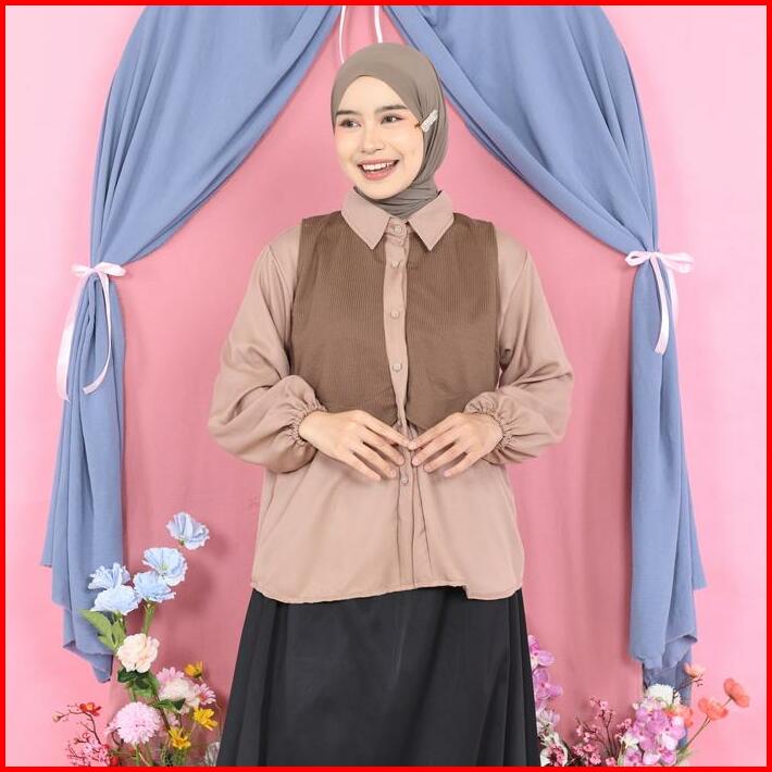 Mybamus Tavy 2in1 Vest Kemeja Atasan Outer Blouse Vest Menyatu Kemeja Kombinasi Casual