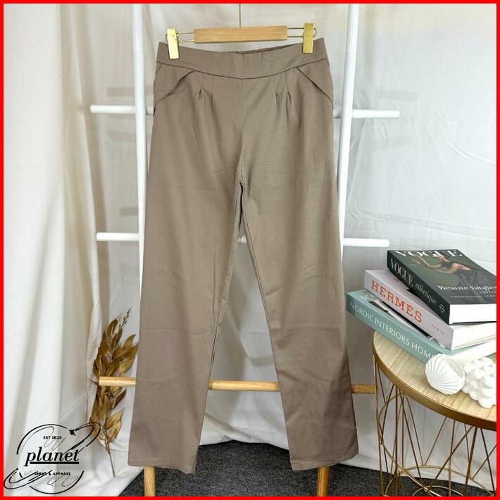 Celana Chino Wanita Chinos Panjang Bahan Melar Elastis Baggy Pants Celana Kerja Wanita Nyaman Pinggang Karet Tebal