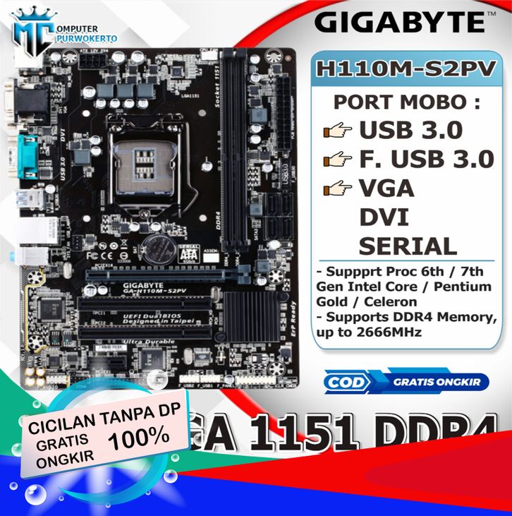 Motherboard Mainboard Mobo Intel Lga 1151 H110 DDR4 Gigabyte