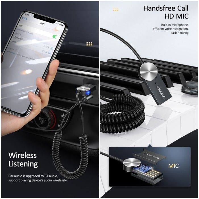 USAMS SJ464 Car Wireless Audio Receiver AUX 3.5mm Bluetooth 5.0