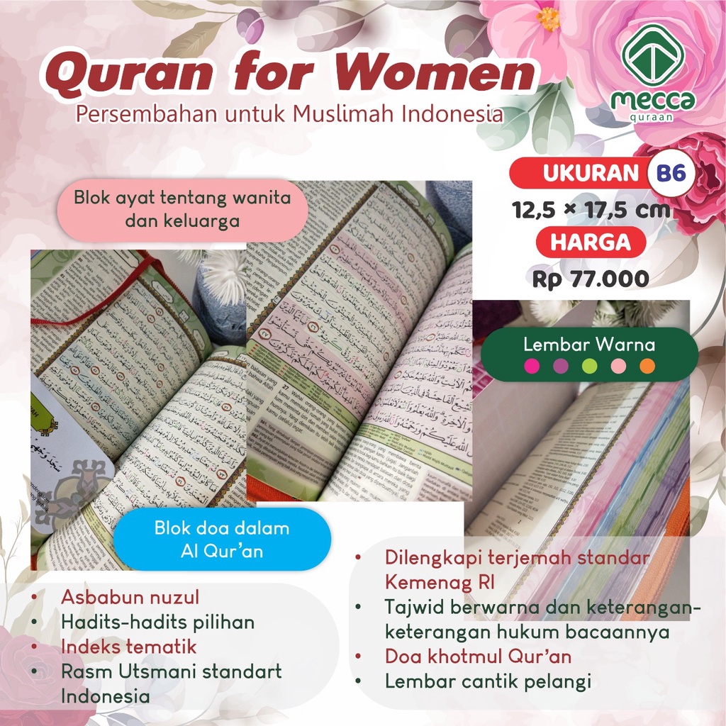 Al Qur'an Terjemah dan Tajwid Warna Al Mihrab Ukuran Sedang (B6) 12,5x17,5cm Terjemahan Saku Almihrab
