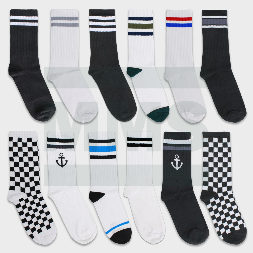 Kaos Kaki Basic Dewasa - Kaos Kaki Panjang - Kaos Kaki Oldschool dewasa motif stripe - Mix Misc Store