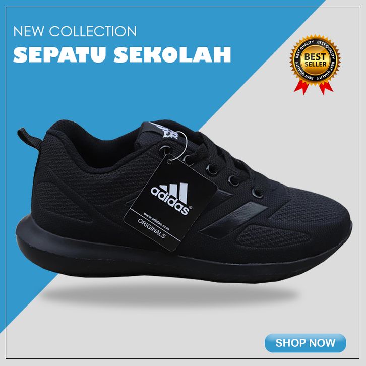 ADS Neo Sepatu Sekolah Anak Laki Laki Dan Perempuan Full Hitam