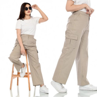 (Gratis Ongkir) Celana Kargo Panjang Wanita Highwaist Jumbo Premium Bahan American Drill Size M L Xl XXL OOTD Korean Sty