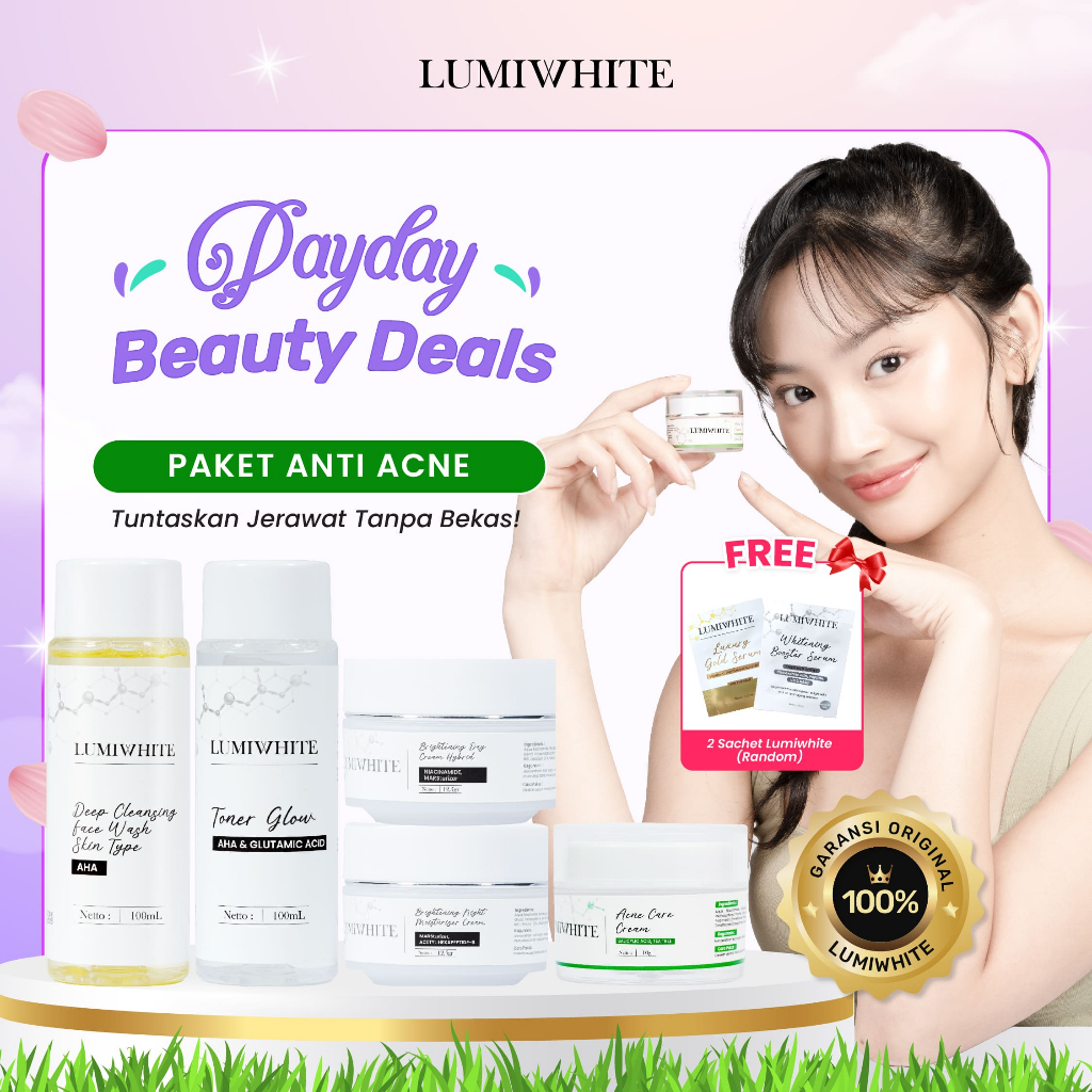 SKINCARE WANITA GLOWING BPOM / LUMIWHITE PAKET SKINCARE ACNE CARE LENGKAP FREE 2 SACHET RANDOM ORIGINAL