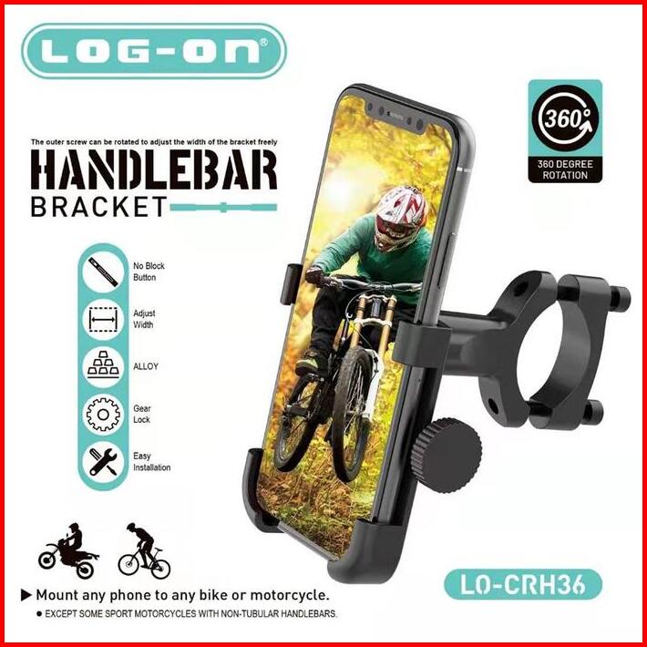 Log On Holder Lo-crh36 Stangmotor Sepeda Aluminium Aloy Dudukan Hp Stand Hp Metal Motor Besi