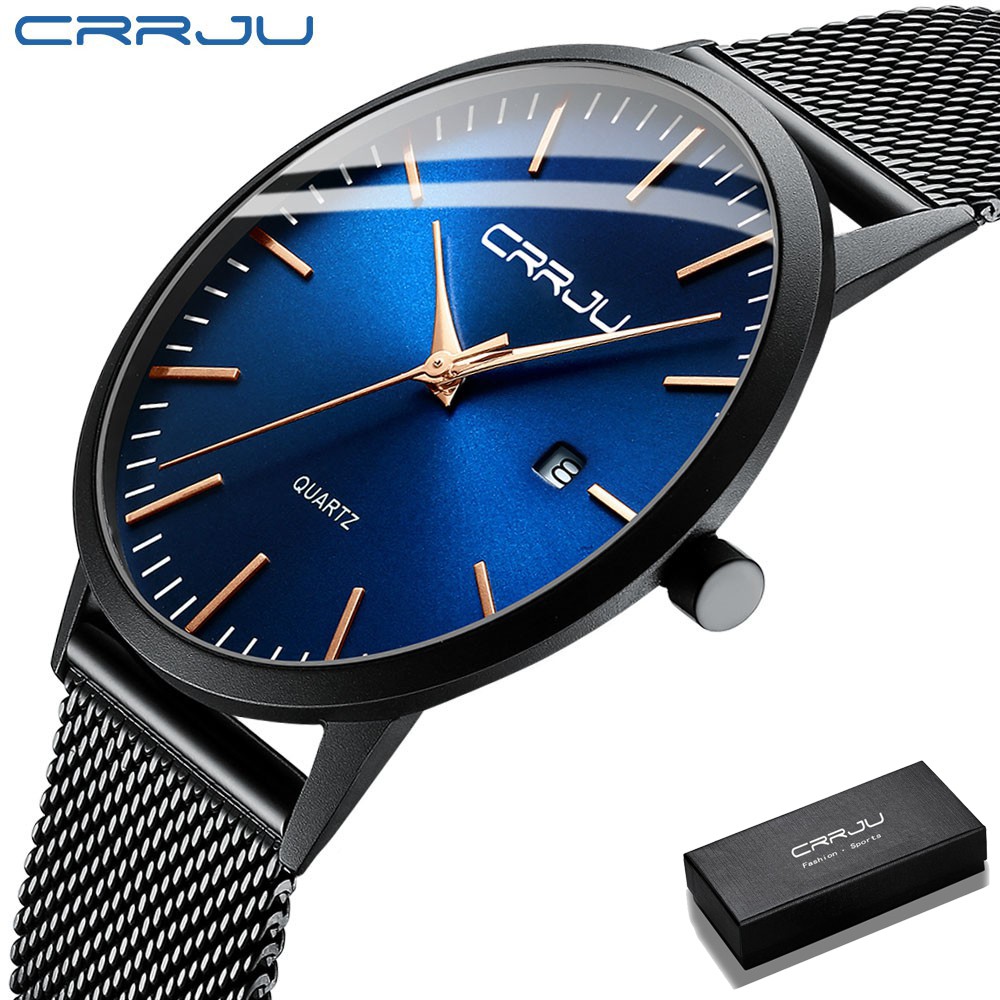 CRRJU Jam Tangan Pria Fashion Kuarsa Ultra Tipis Jam Tangan Cowok Olahraga Kasual Tahan Air