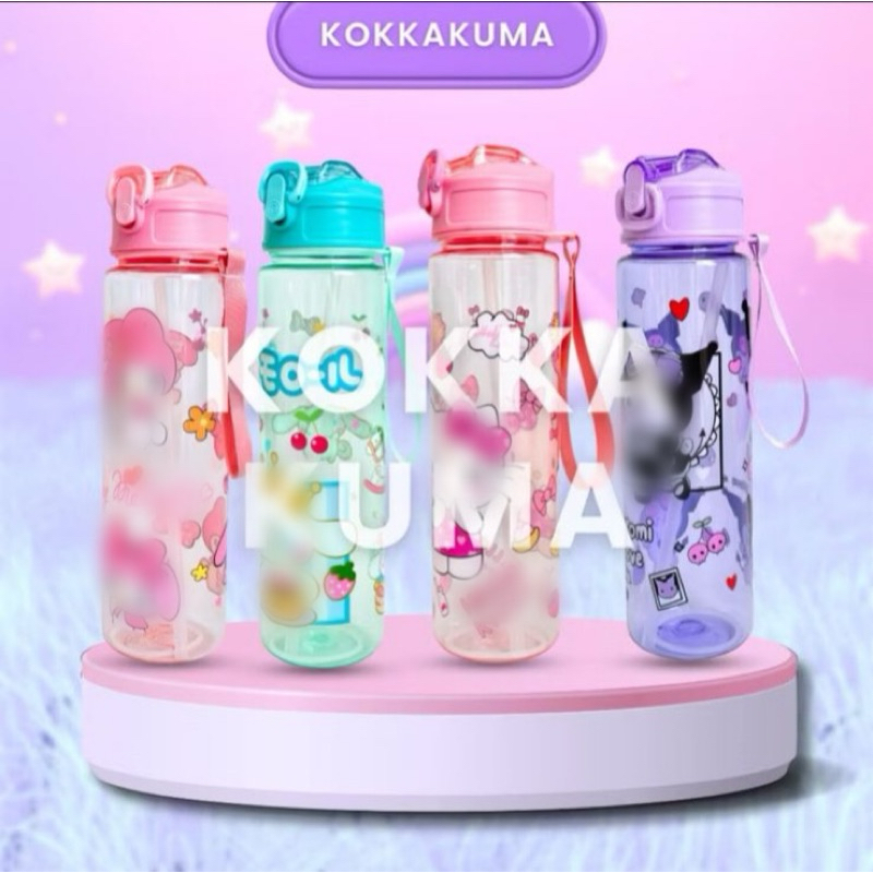 ( KKM ) BOTOL MINUM 900 ml Bening Plastik BPA Free Karakter Lucu Anak Perempuan ada Sedotan dan Tali Pegangan