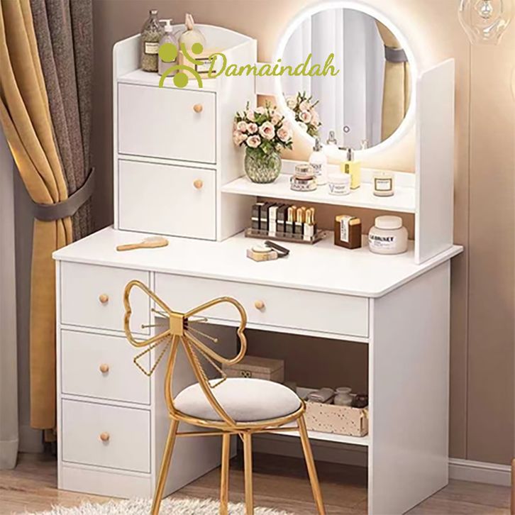 Damaindah Set Meja Rias Kursi Pita/ Meja Rias Set Bangku / Meja Rias Lampu LED / Meja Rias Dengan Cermin / Meja Rias Min