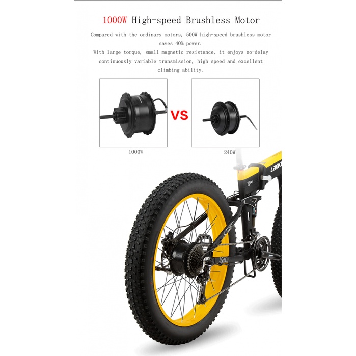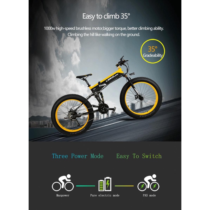 Sepeda MTB Elektrik Listrik Lipat Fat Tires 48V 10AH 1000W Lankeleisi XT750 Plus