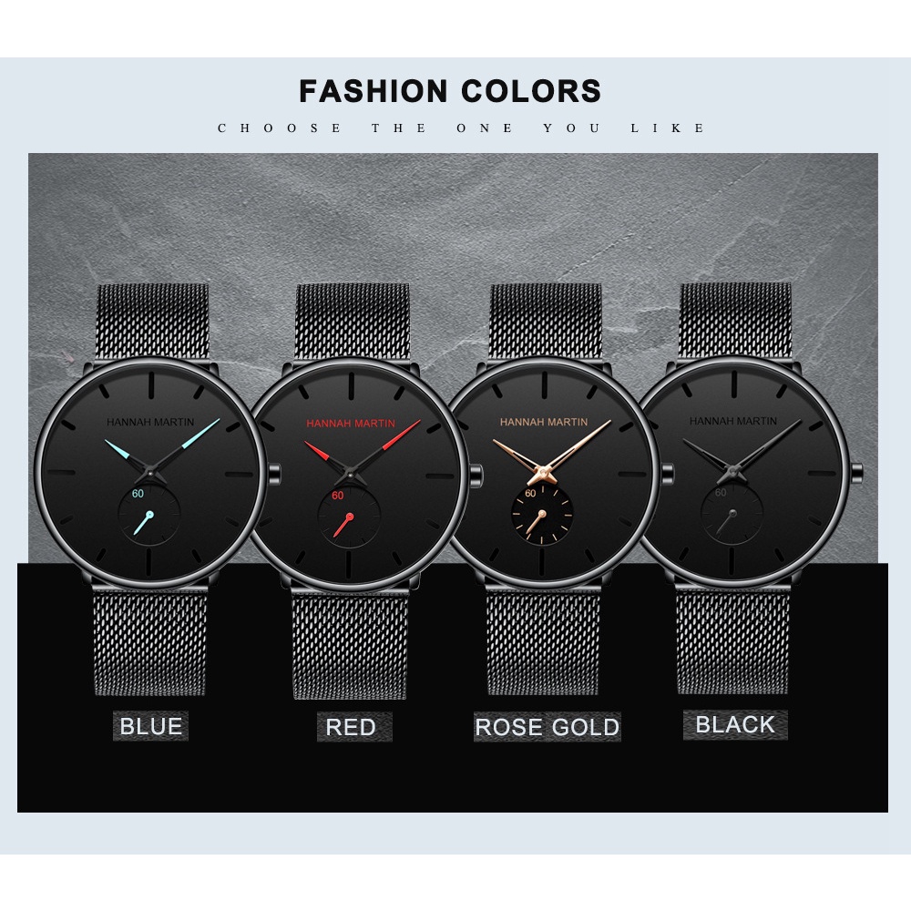 Jam Tangan Pria Hannah Martin HM100G Mesh Analog Premium Anti Air Original