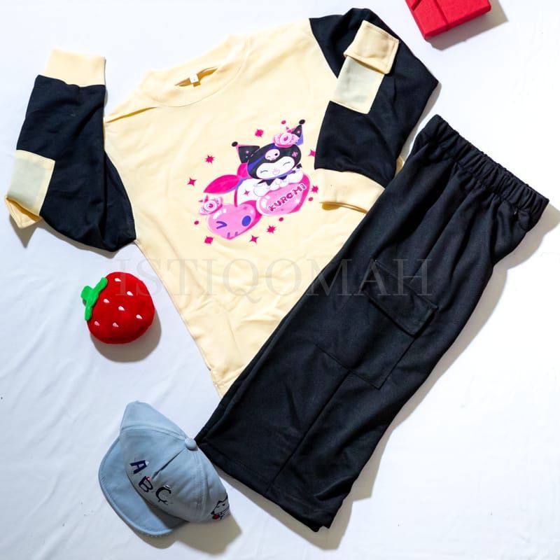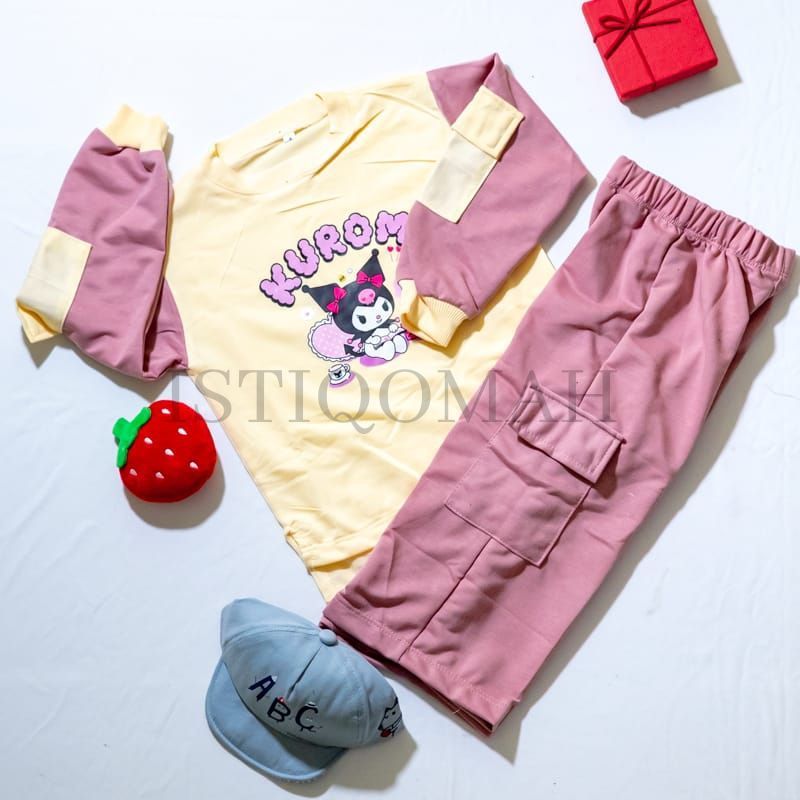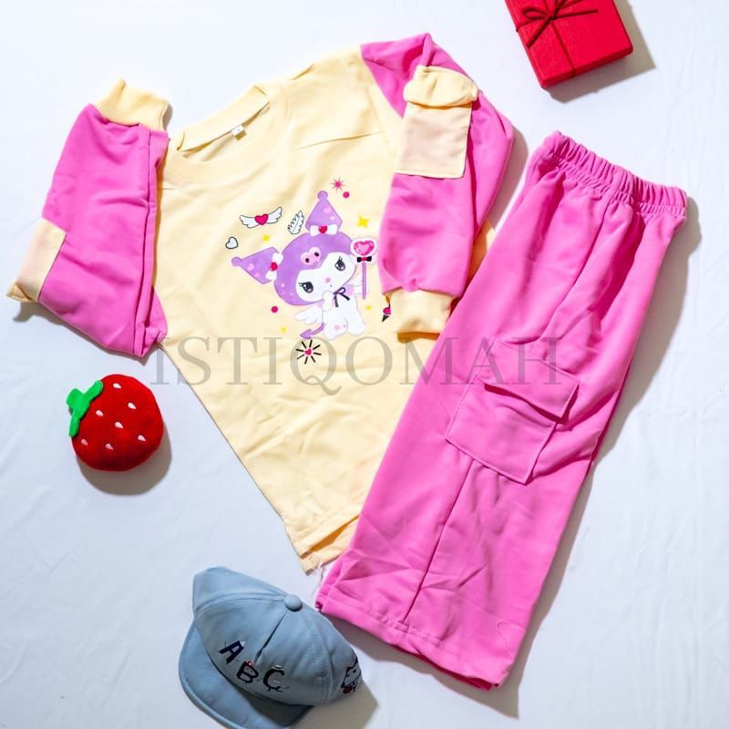 STELAN CARGO KUROMI ANAK PEREMPUAN 1-12 TAHUN // MODEL PAKAIAN ANAK LENGAN PANJANG CELANA PANJANG