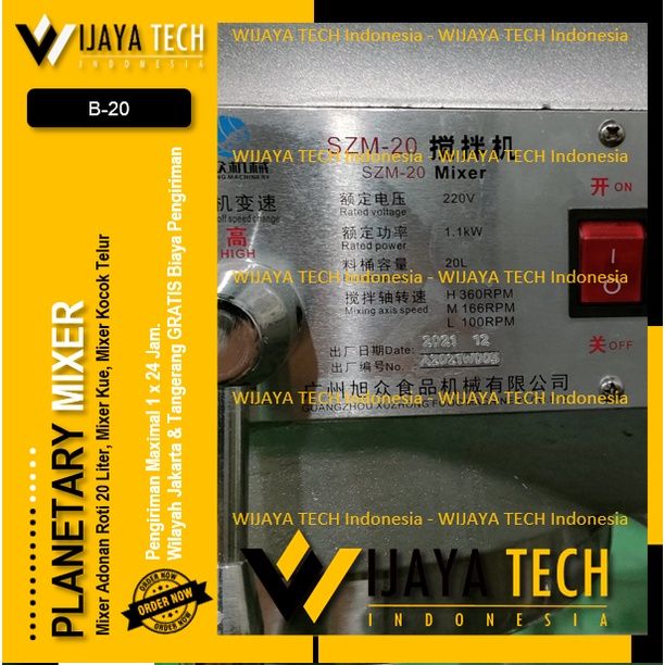 Planetary Mixer 20 Liter B-20 Mixer Adonan Roti 20L SZM-20 Mixer Kue Mixer Kocok Telur 20 L B20 SZM20 Dough Mixer