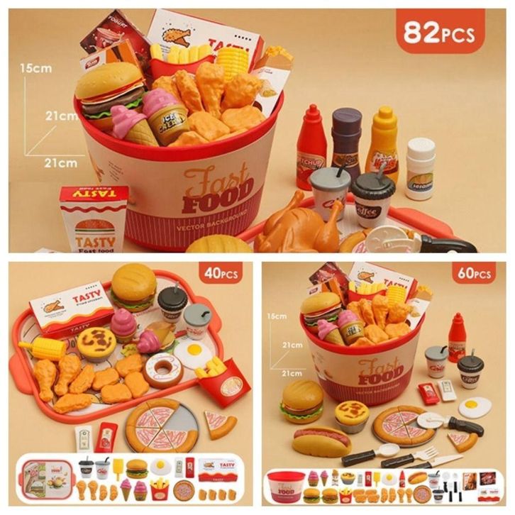 Mainan Masak-masakan DIY Dapur Set Fast Food Makanan Cepat Saji Burger Kentang Goreng Anak-anak