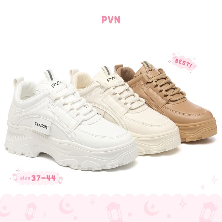 PVN OFFICIAL SHOP - YERI SEPATU SNEAKERS WANITA PUTIH HITAM KASUAL SPORT SHOES WHITE BLACK 320