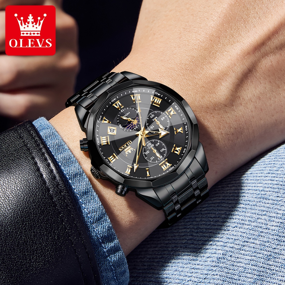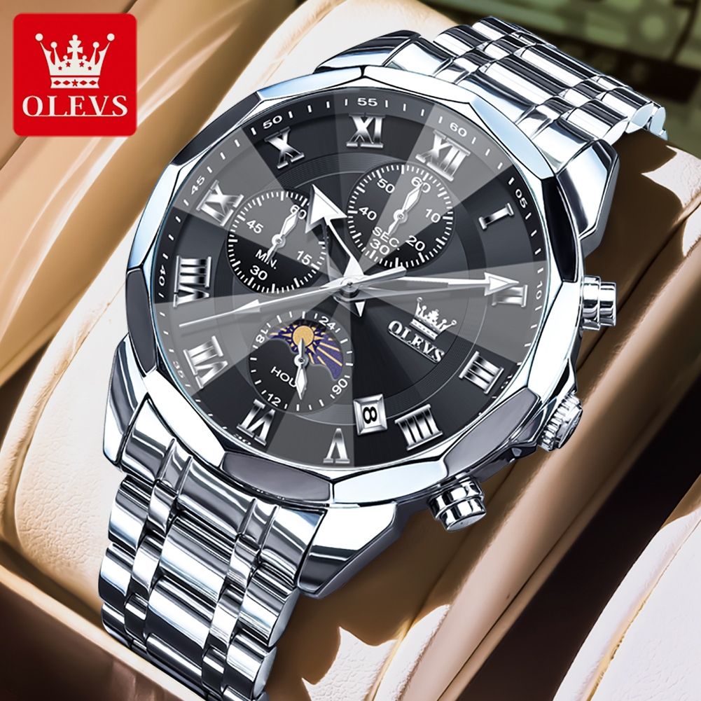 OLEVS Jam Tangan Pria Anti Air Original Stainless Steel Terbaru Luminous Kalender Men Watch 3675