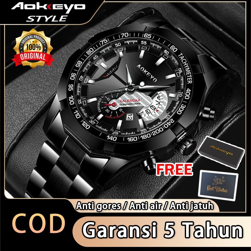 AOKEYO S001 Jam Tangan Pria Anti Air Original Luxury Stainless Steel Free BOX+Kartu