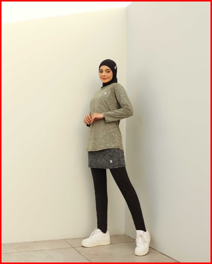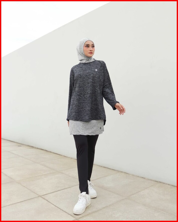 Hitjab Baju Olahraga Tangan Panjang Ladies Gym Running Bersepeda Jumbo
