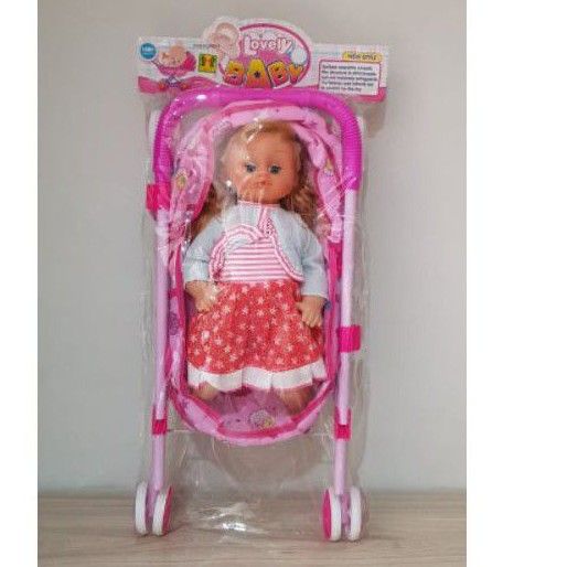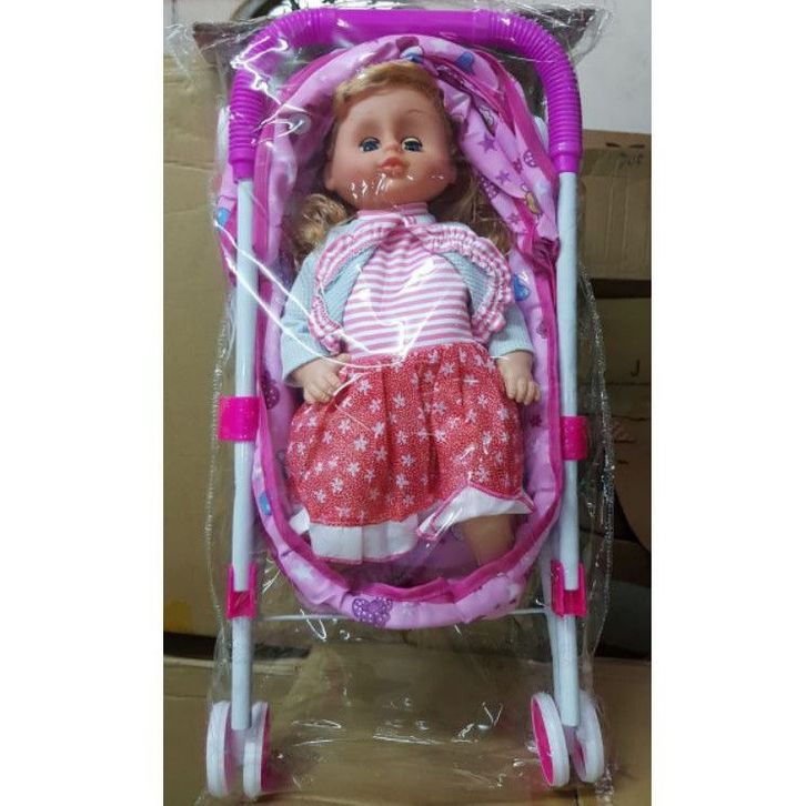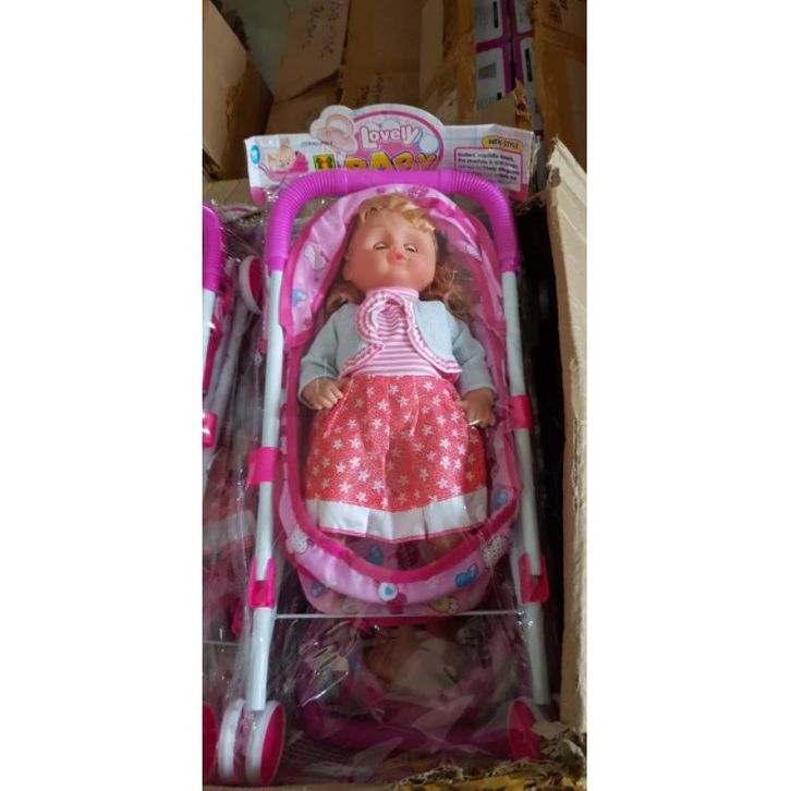 Mainan Boneka Stroller Besi bisa Nangis papa mama ketawa