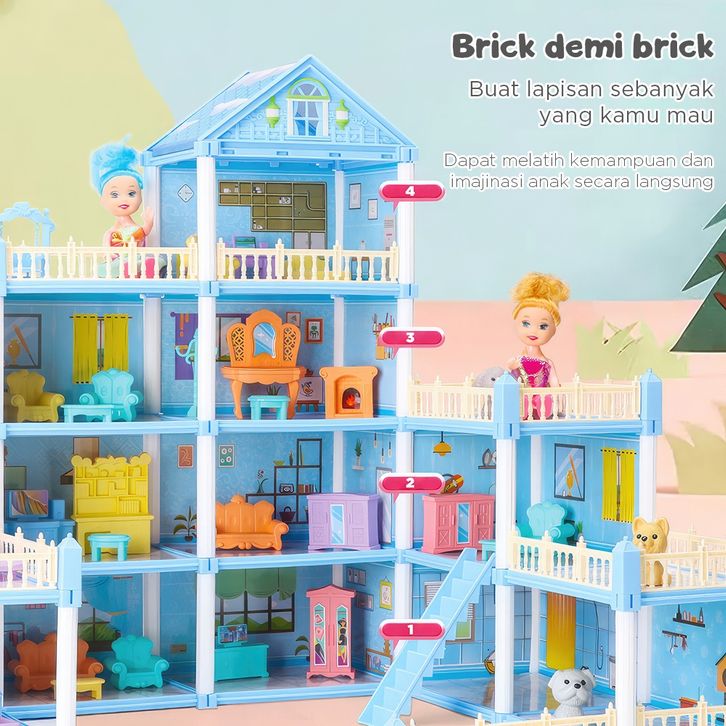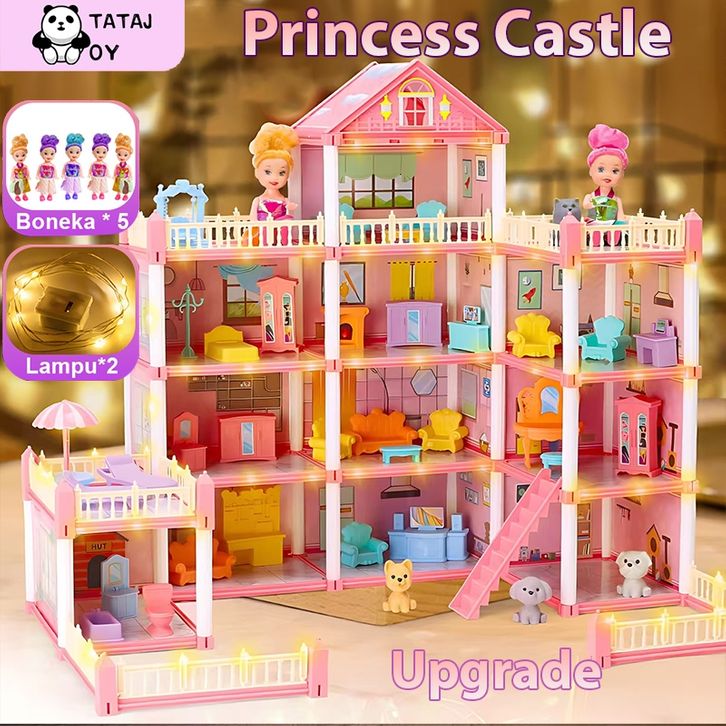 Tatajoy Mainan Princess Castle Besar 14 House Rumah Rumahan Anak Perempuan Doll House DIY Rumah Boneka Pink Castle Berm