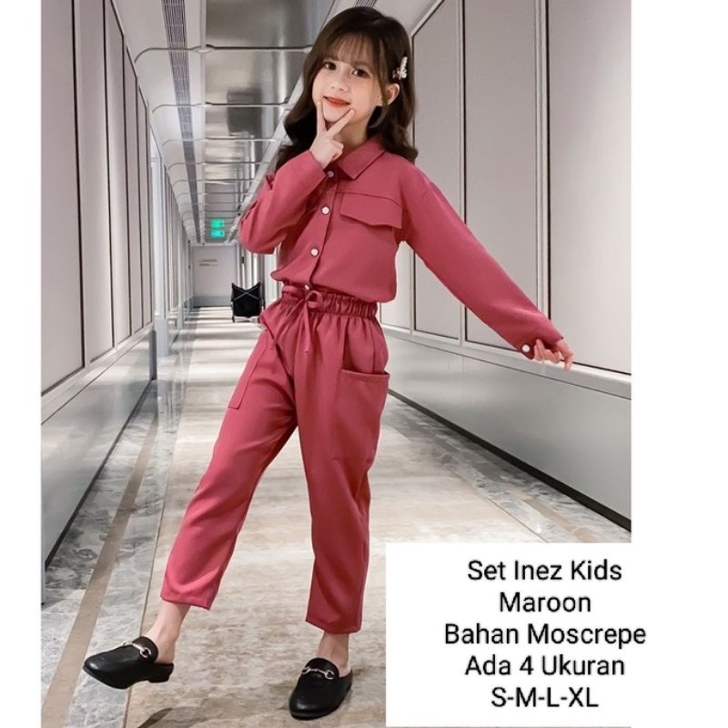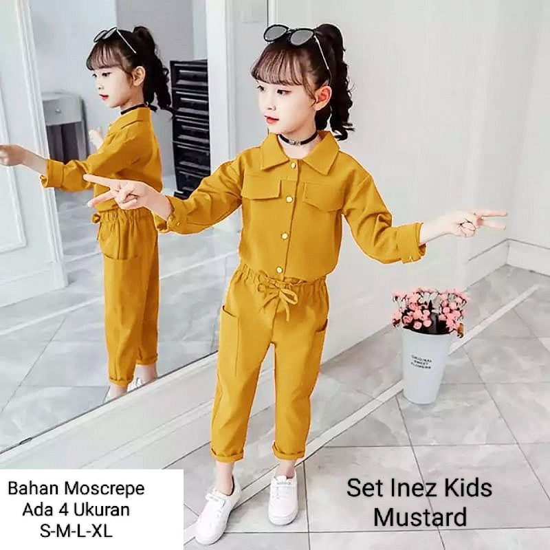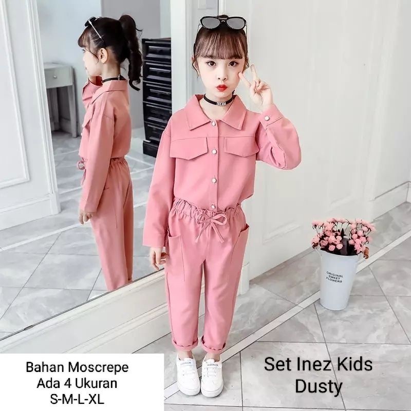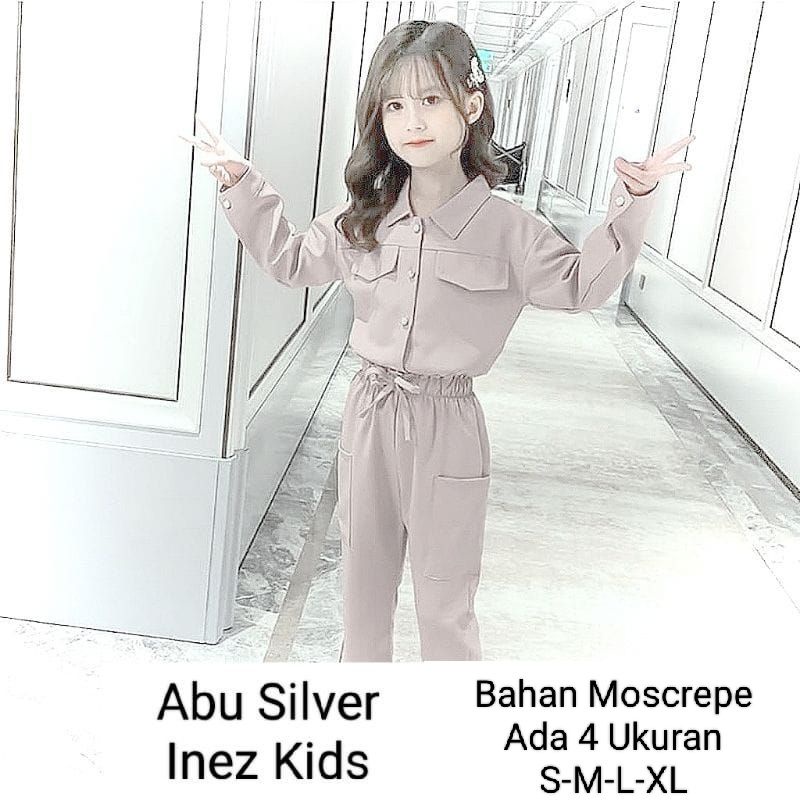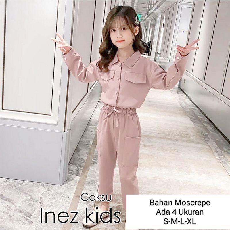 STELAN KEMEJA ANAK PEREMPUAN LENGAN PANJANG CELANA PANJANG/SET INEZ KIDS 3-11 TAHUN MATT MOSCREPE