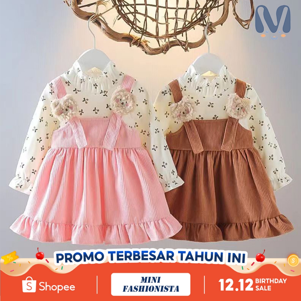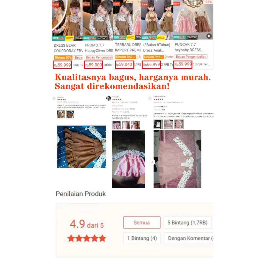 DRESS ANAK PEREMPUAN IMPORT DRESS BEAR ANAK CEWEK CANTIK DRESS IMPORT ANAK PEREMPUAN USIA 6 BULAN - 4 TAHUN
