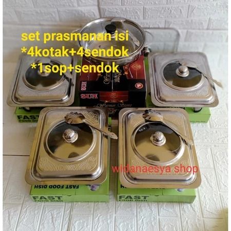 set prasmanan isi 4kotak+1sop+ 4sendok n 5kotak+sop / Wadah Set Prasmanan / Prasmanan Tempat Makan Stainless Terlaris