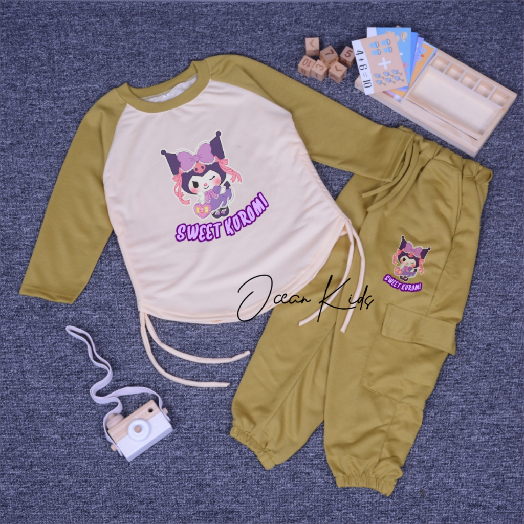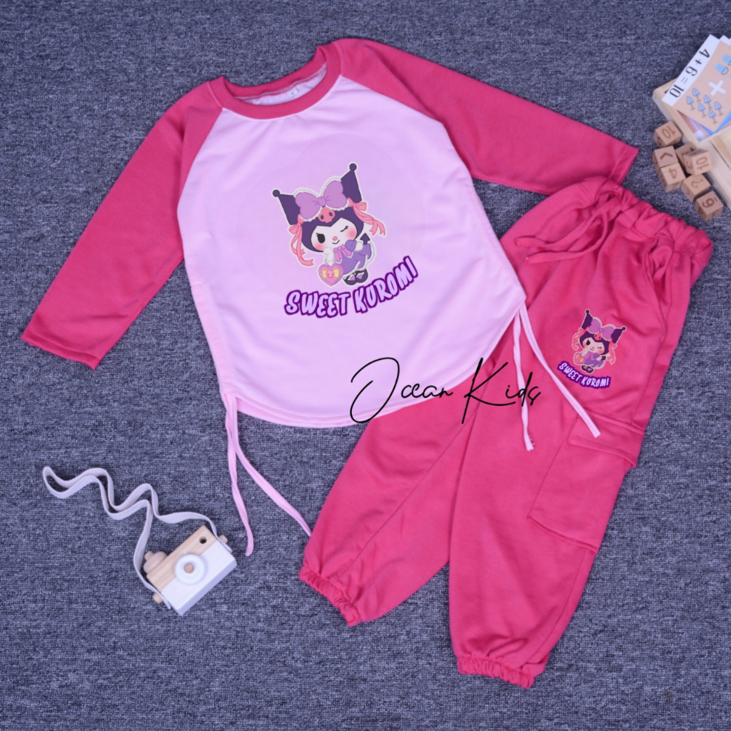 SETELAN KUROMI ANAK PEREMPUAN VIRAL BAJU ANAK PEREMPUAN SETELAN JOGER ANAK TERBARU 1-11 TAHUN MOTIF SWEET KUROMI