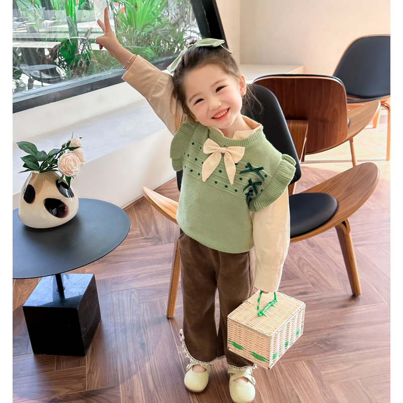 TWINKLE SETELAN BAJU ANAK PEREMPUAN LENGAN PANJANG BAHAN RAJUT MOTIF PITA KOREAN STYLE USIA 1-4 THN