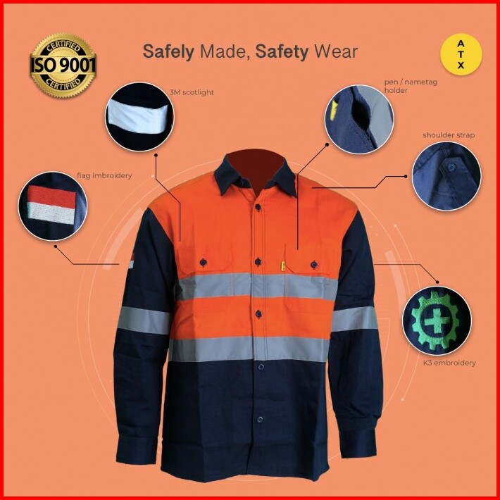 Wearpack Safety Baju Kerja Lengan Panjang Kombinasi Merk Atx