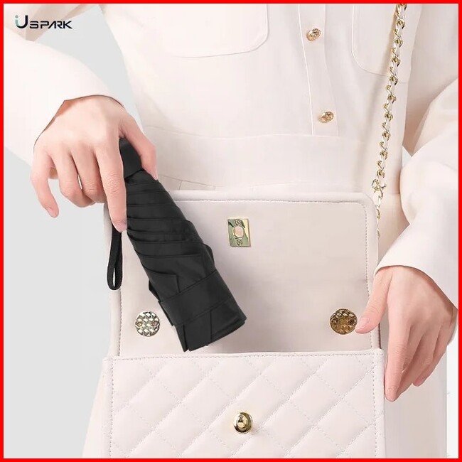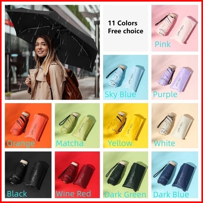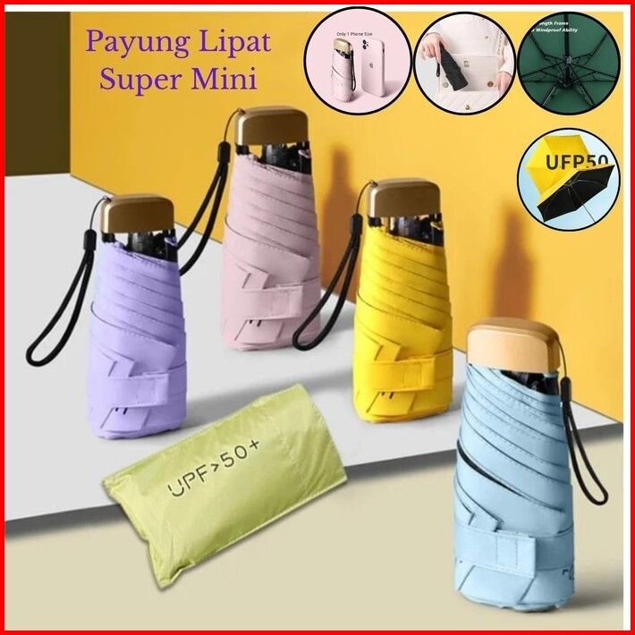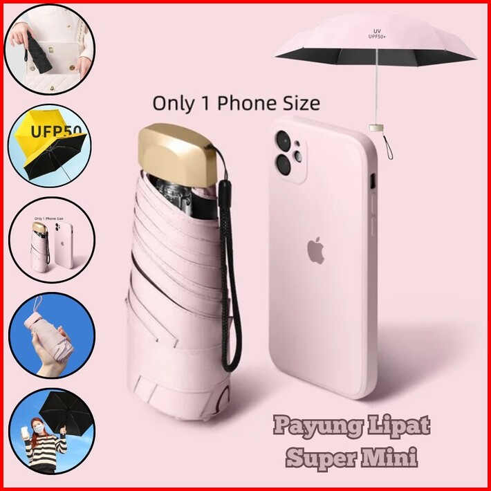 Payung Lipat Mini Anti Uv Ringan Tahan Panas Hujan Sinar Matahari Premium Lapis Hitam Upf50 Muat Tas Kantong Saku
