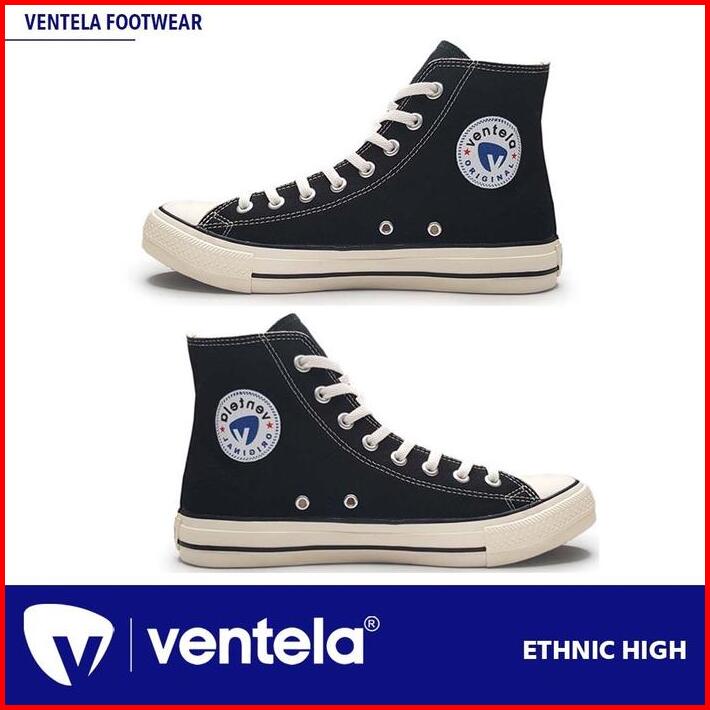 Sepatu Ventela Ethnic High Causal Shoes Canvas Karet Sepatu Sekolah Black Kasual Ventela Casual Pria Warrior Wool Rapi F