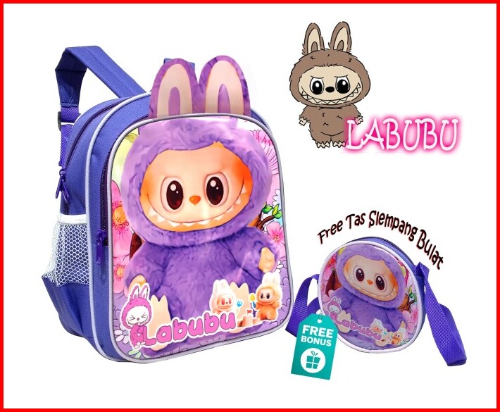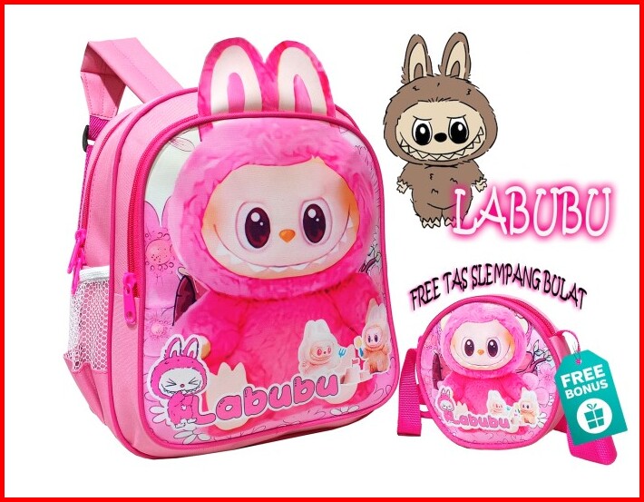 Tas Ransel Labubu Tas Anak Perempuan Sekolah Paud Tk Sd Tas Ransel 2 In 1 Karakter Labubu Free Tas Slempang Bulat