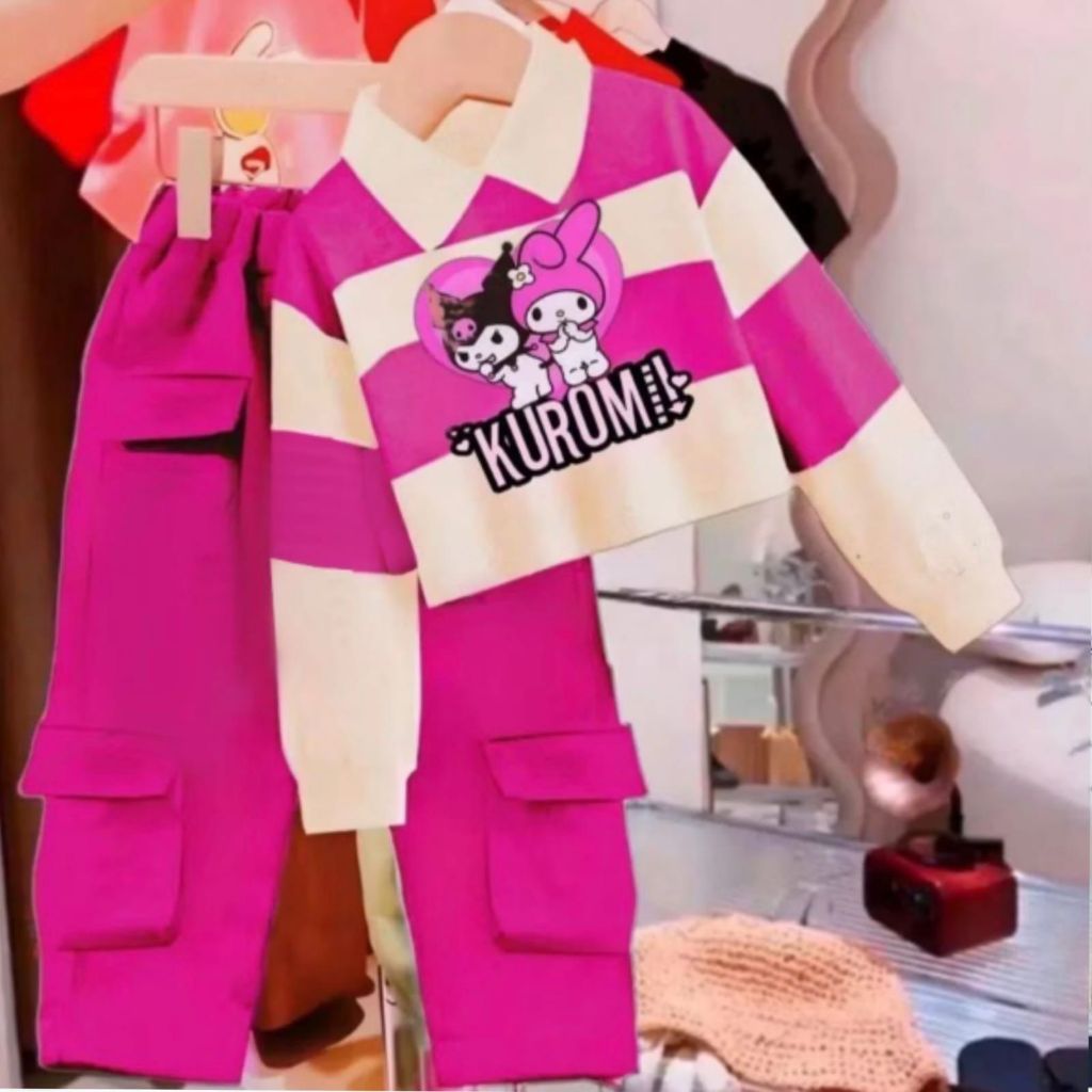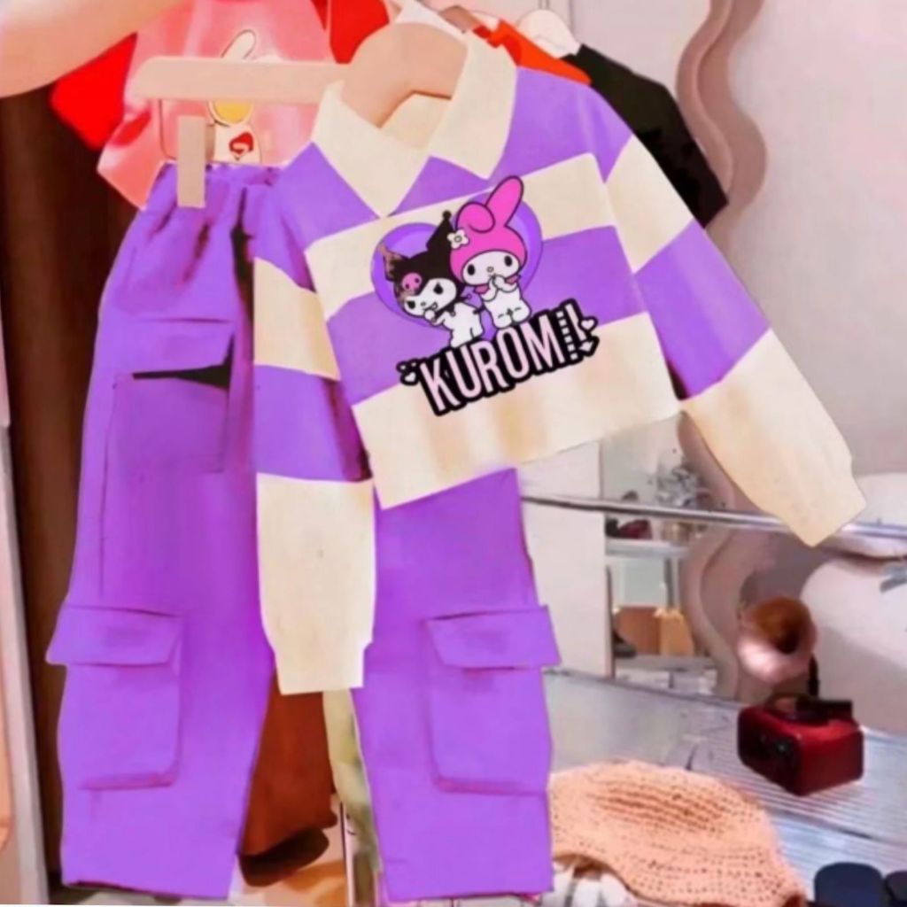 PROMO ONE SET CROP T0P KUROMI ANAK PEREMPUAN VIRAL TERBARU DAN TERLARIS/BAJU ANAK PEREMPUAN 2-10 TAHUN