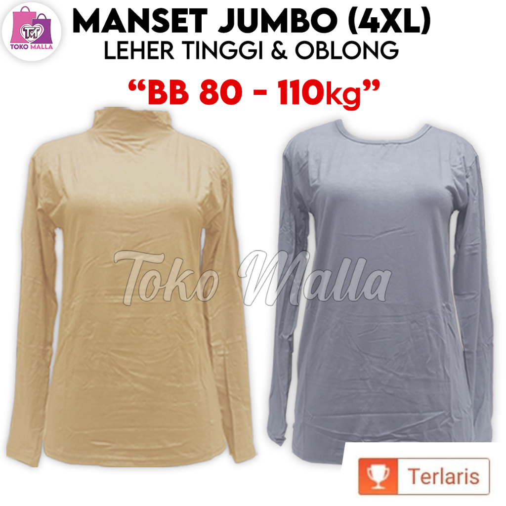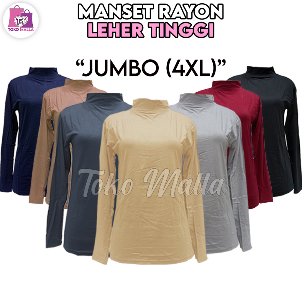 Baju Manset Jumbo Big Size Lengan Panjang Wanita Bahan Rayon Super Kerah Leher Turtle Neck Polos Dalaman Perempuan Hitam
