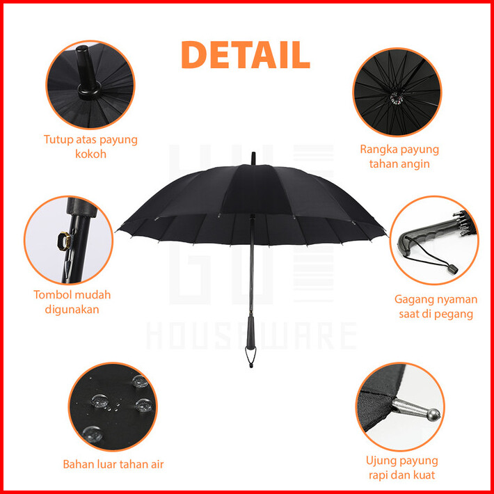 Hugo Payung Golf Besar Payung Polos Jumbo 16 Jari Premium Kuat Kokoh