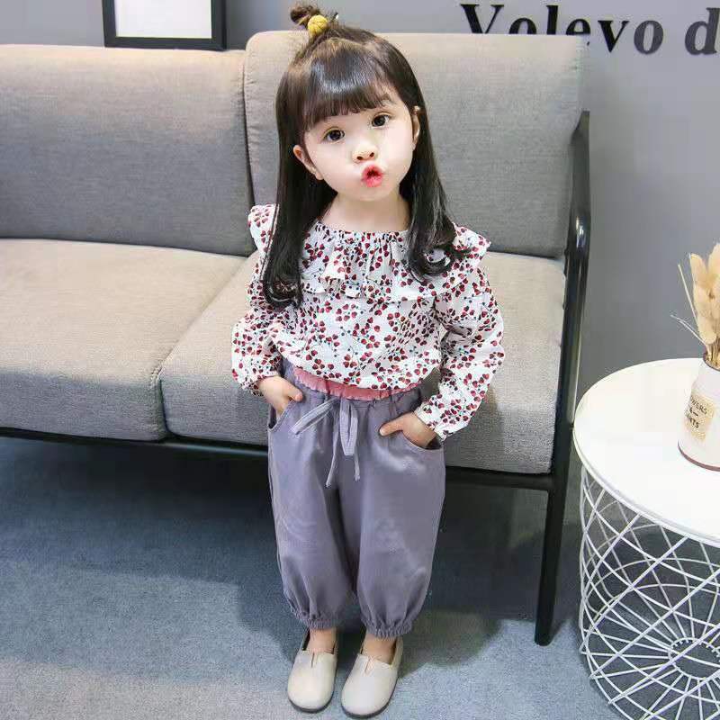 KF CAT SETELAN BAJU ANAK PEREMPUAN LENGAN PANJANG MOTIF BUNGA BAHAN KATUN PREMIUM USIA 2-5 TAHUN