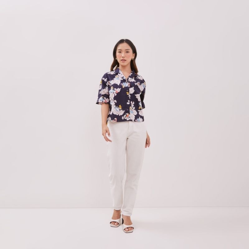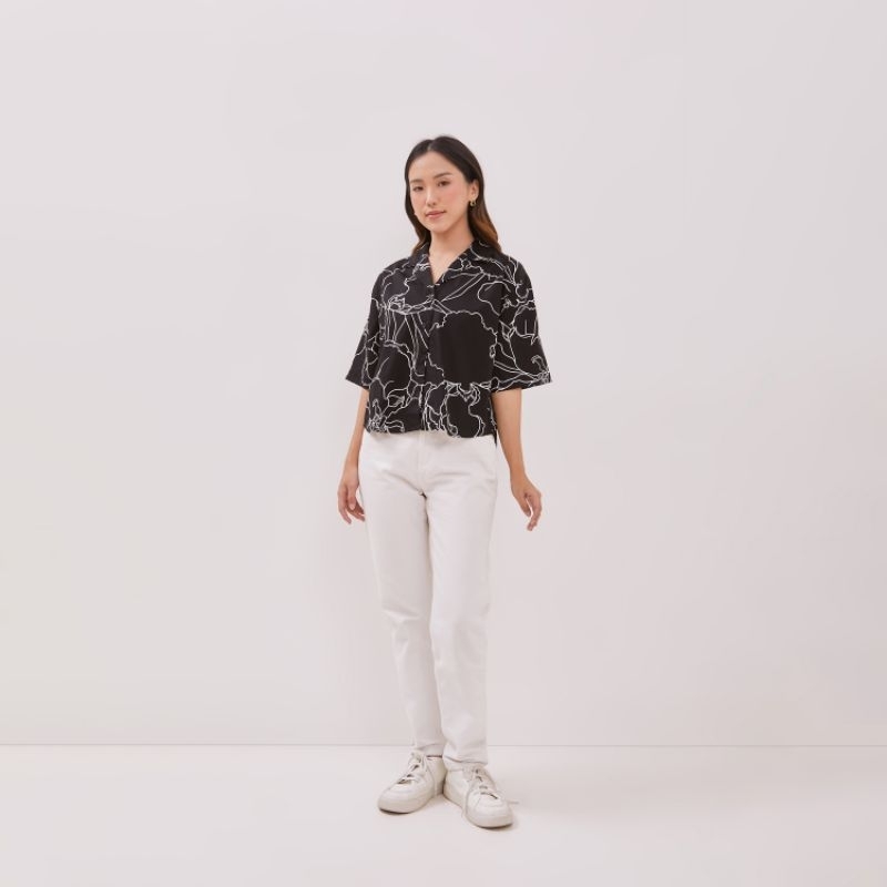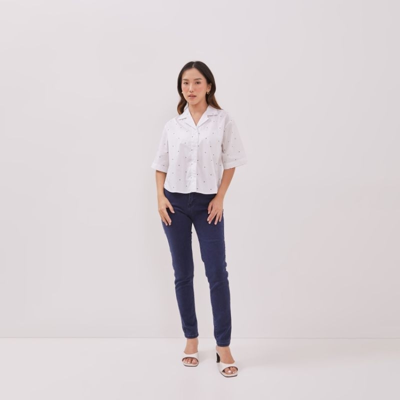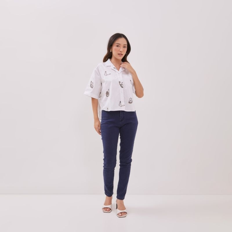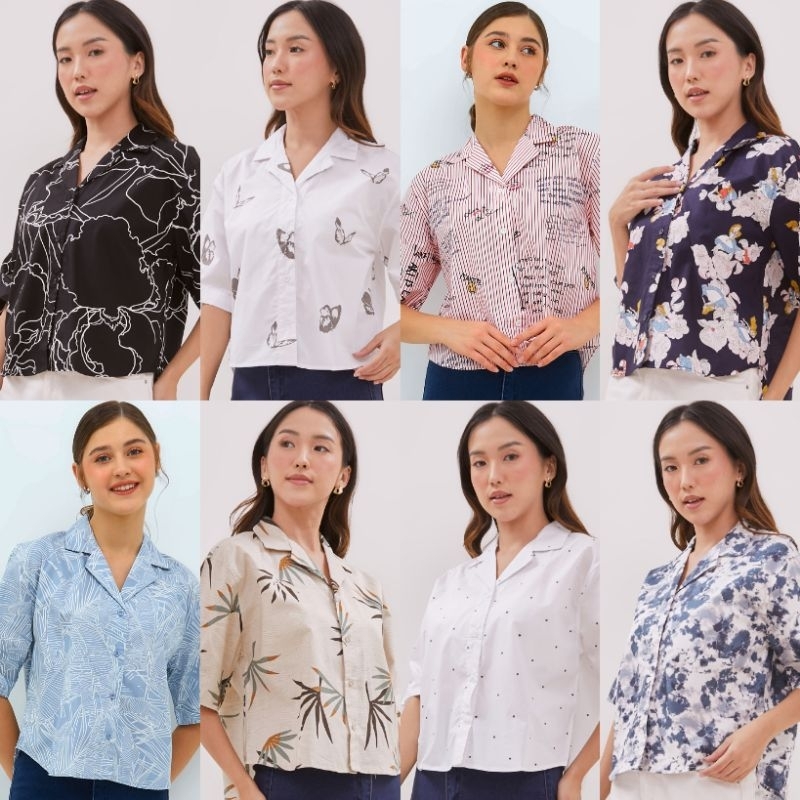 Kemeja katun wanita kerah terbuka lengan pendek vol. 4