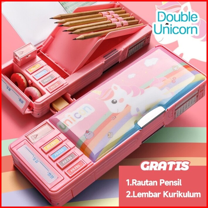 Kotak Pensil Anak Tempat Pensil Multifungsi Motif Lapisan Ganda Murah