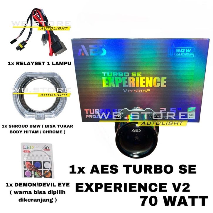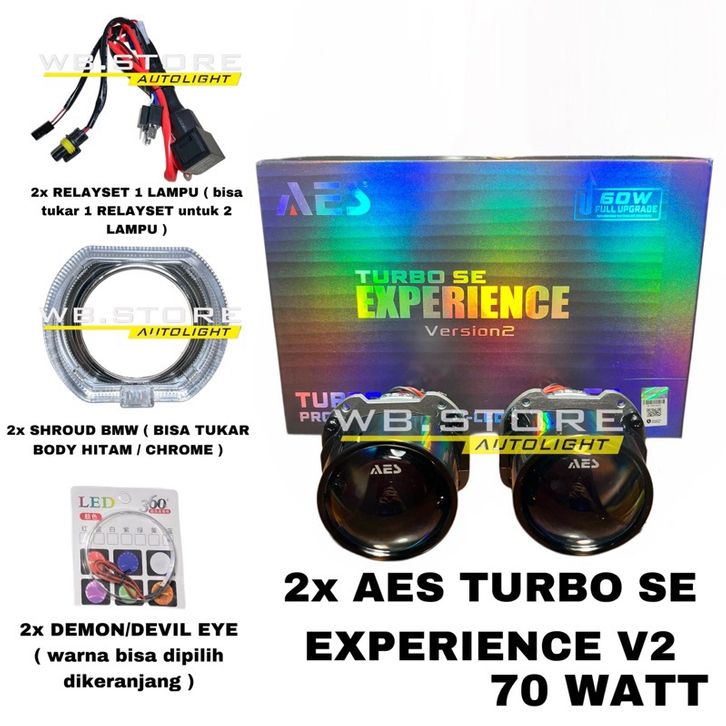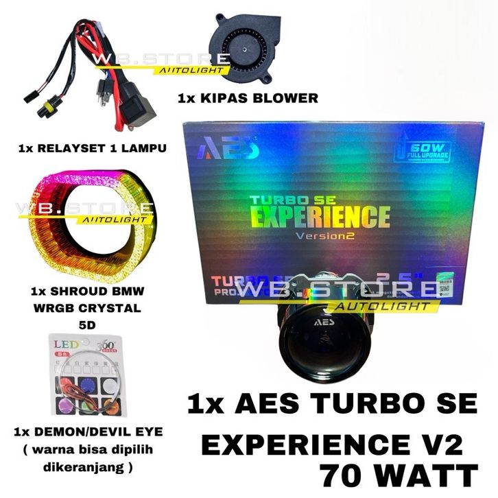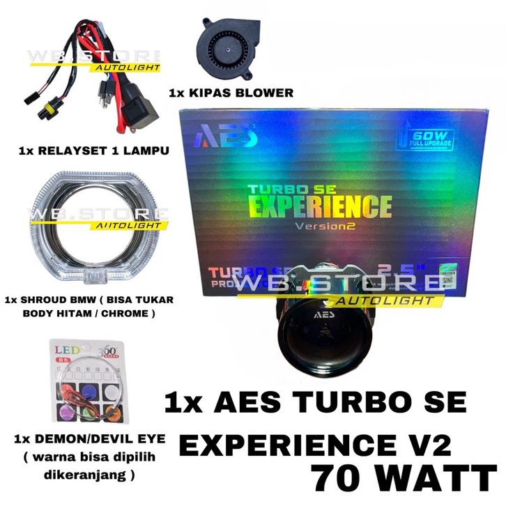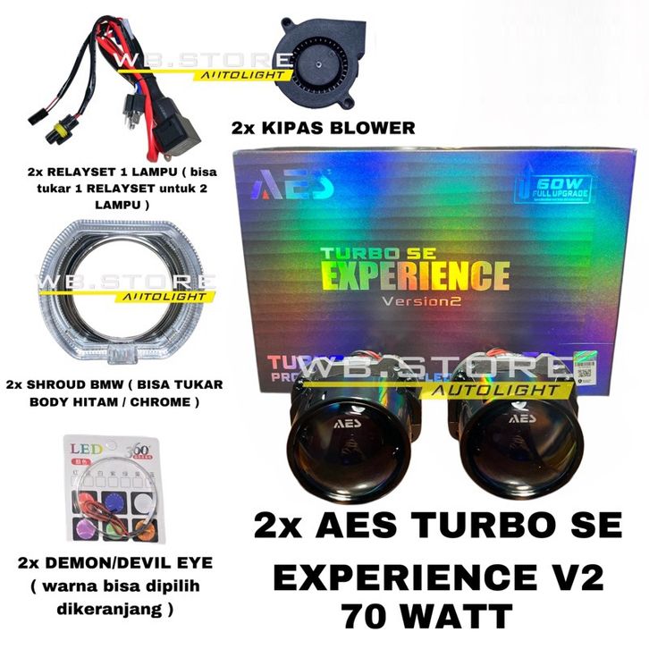 LAMPU BILED AES TURBO SE EXPERIENCE 60 WATT ORIGINAL BILED GEN 3 AES PAKETAN SHROUD 2,5 INCHI LAMPU PROJIE BILED MOTOR