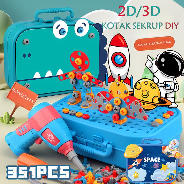 Kotak alat simulasi anak-anak merakit mainan / mainan pendidikan sekrup perbaikan bor listrik DIY mainan pendidikan unt