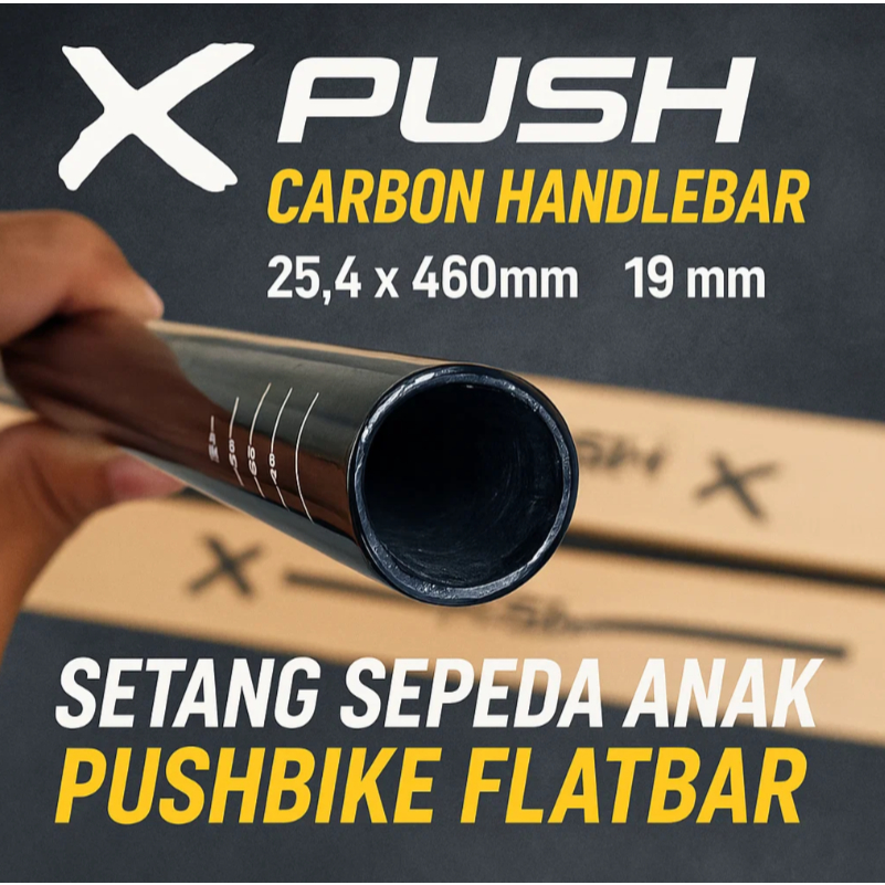 Xpush Carbon Handlebar 25.4 x 460mm 19mm Setang Stang Karbon Handle Sepeda Anak Pushbike Flatbar 19 mm