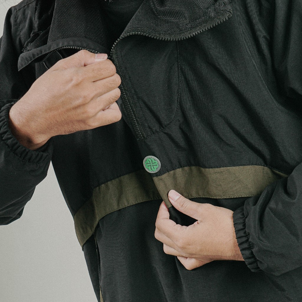 Shin Anorak Jacket Black Waterproof Nylon - Jaket Pria