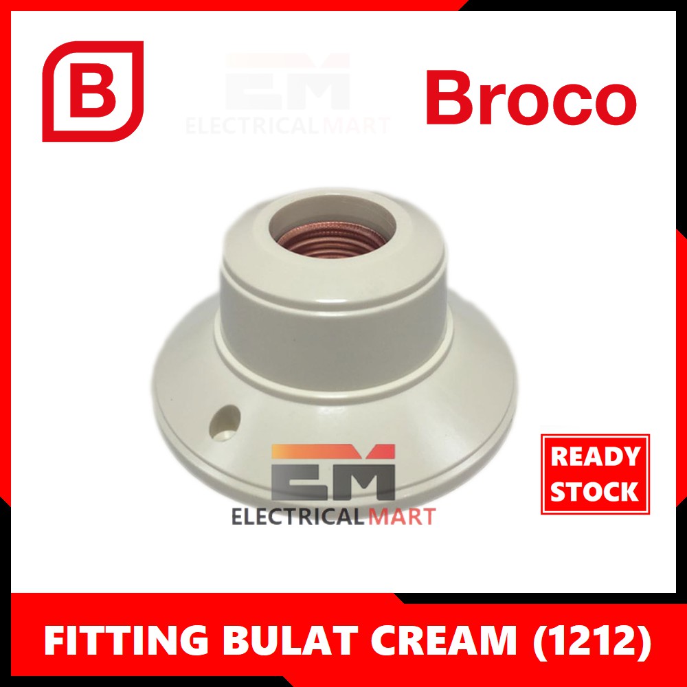 Fitting Plafon Broco Bulat Cream (1212) Ceiling Lamp Holder Socket Lampu E27 Tempel Original Grosir