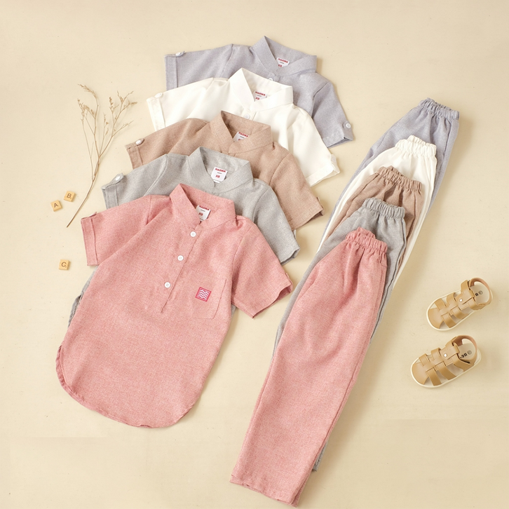 Setelan Baju Muslim Anak Laki Laki One Set Koko Polos 1-12 Tahun Super Adem Lembut Best Seller